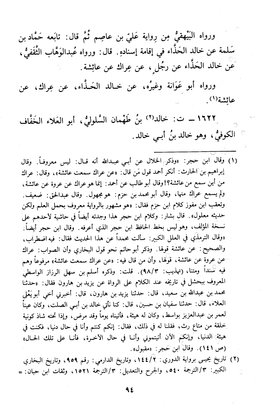1622 - ت: خالد بن طهمان السلولي (2) ، أَبُو العلاء الخفاف الكوفي، وهو خالد بن أَبي خالد.