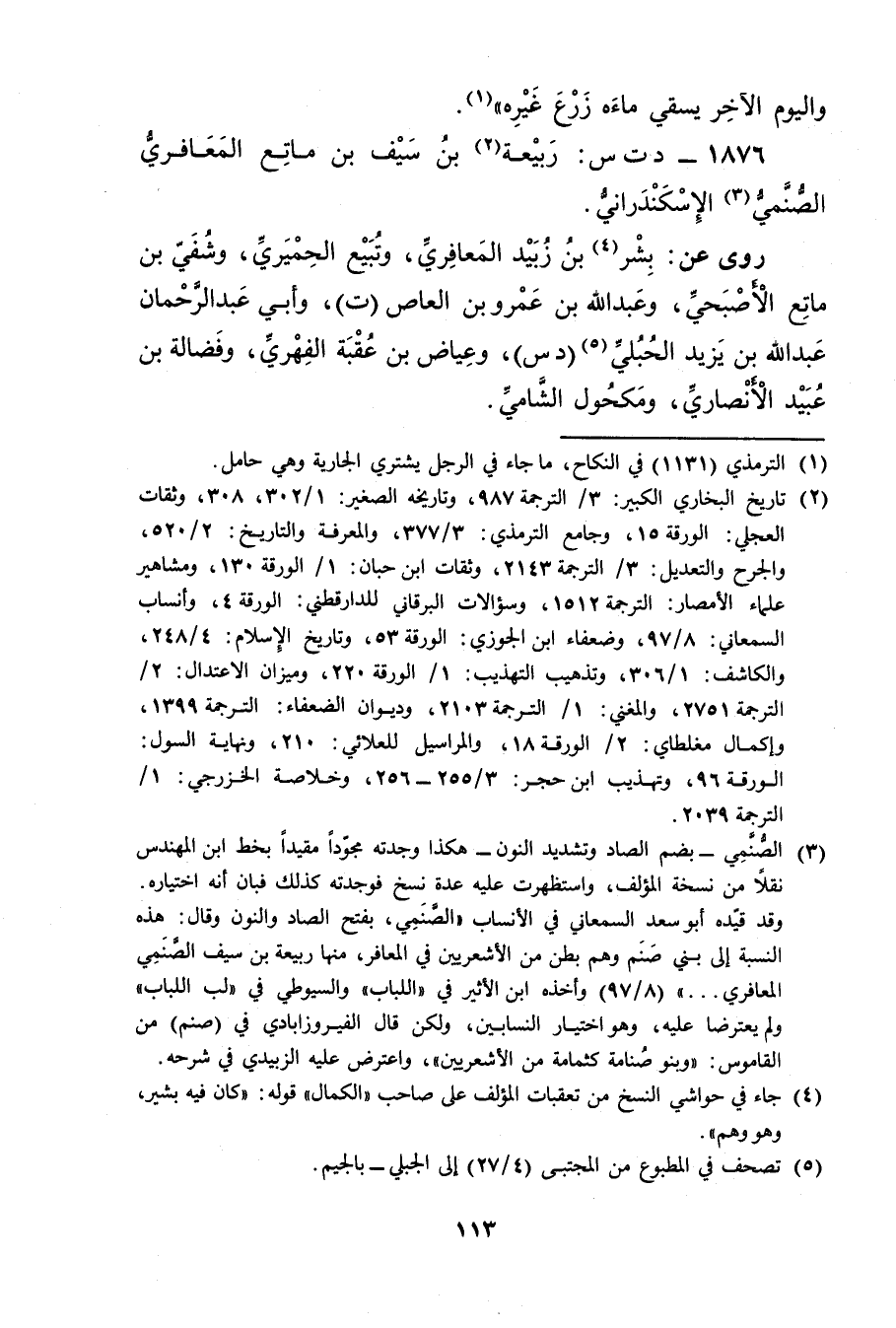 1876 - د ت س: ربيعة بن سيف بن ماتع المعافري (2) الصنمي (3) الإسكندراني.