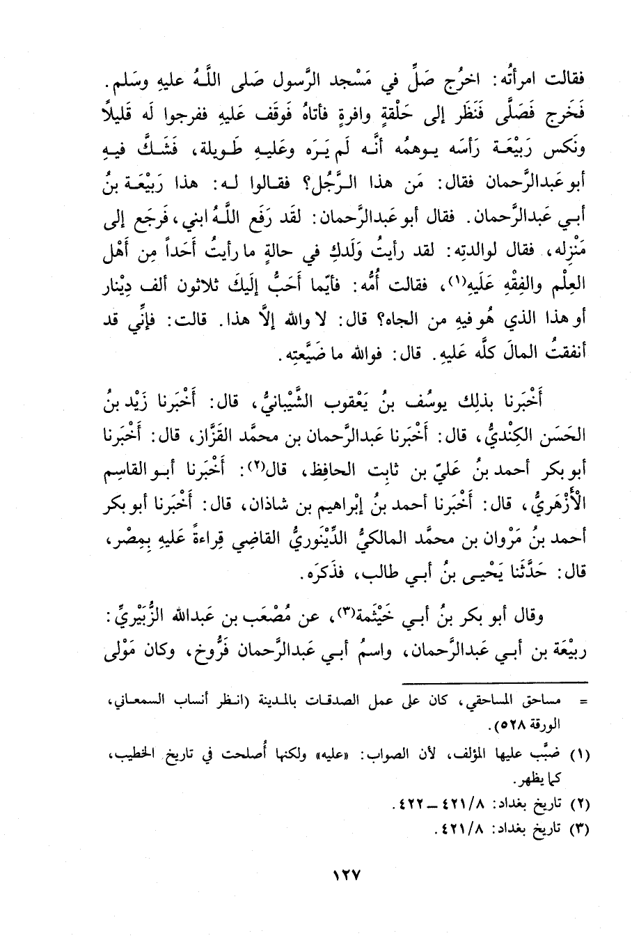(2) تاريخ بغداد: 8 / 421 - 422.