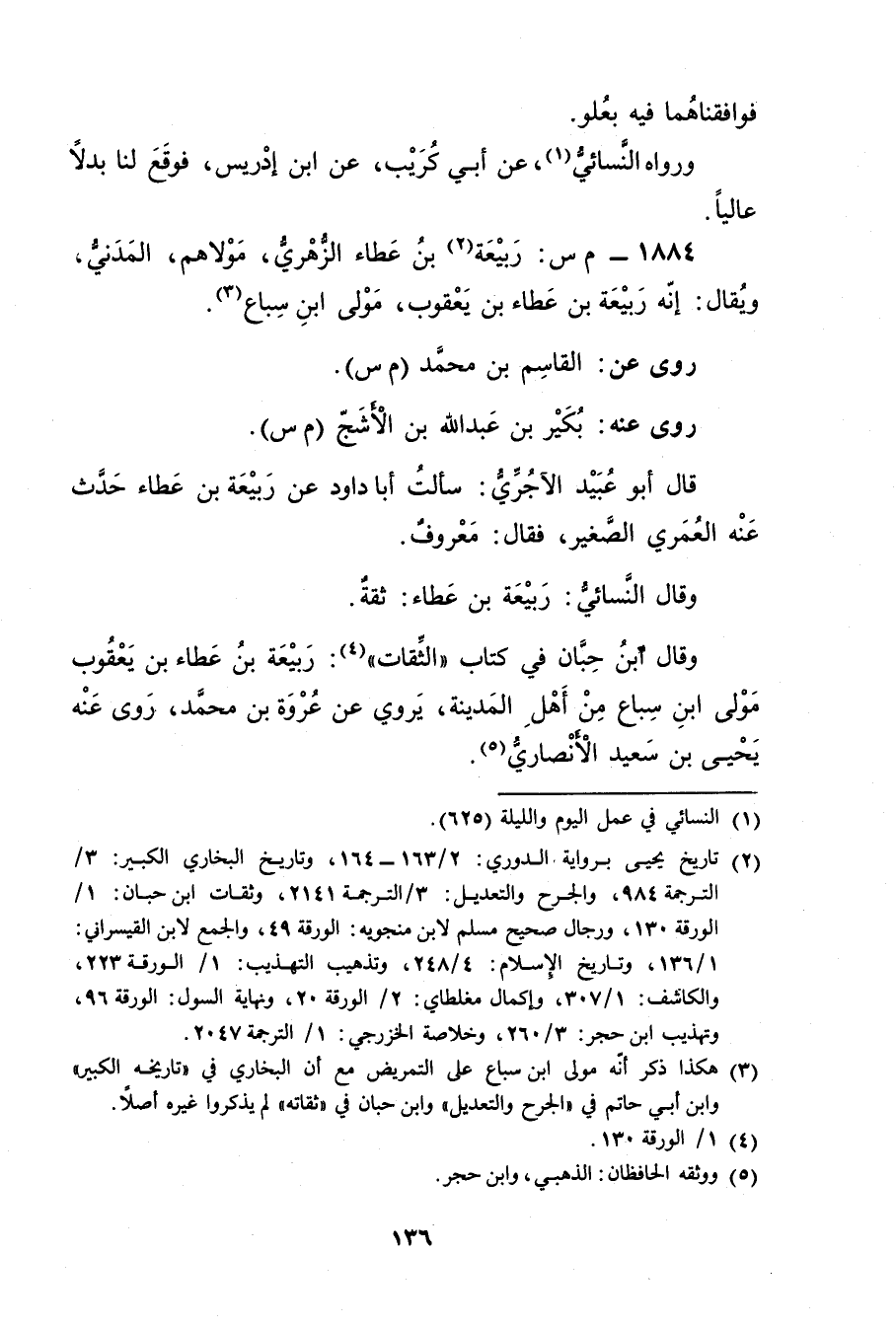 (3) هكذا ذكر أنه مولى ابن سباع على التمريض مع أن البخاري في "تاريخه الكبير"وابن أَبي حاتم في "الجرح والتعديل"وابن حبان في "ثقاته"لم يذكروا غيره أصلا.
