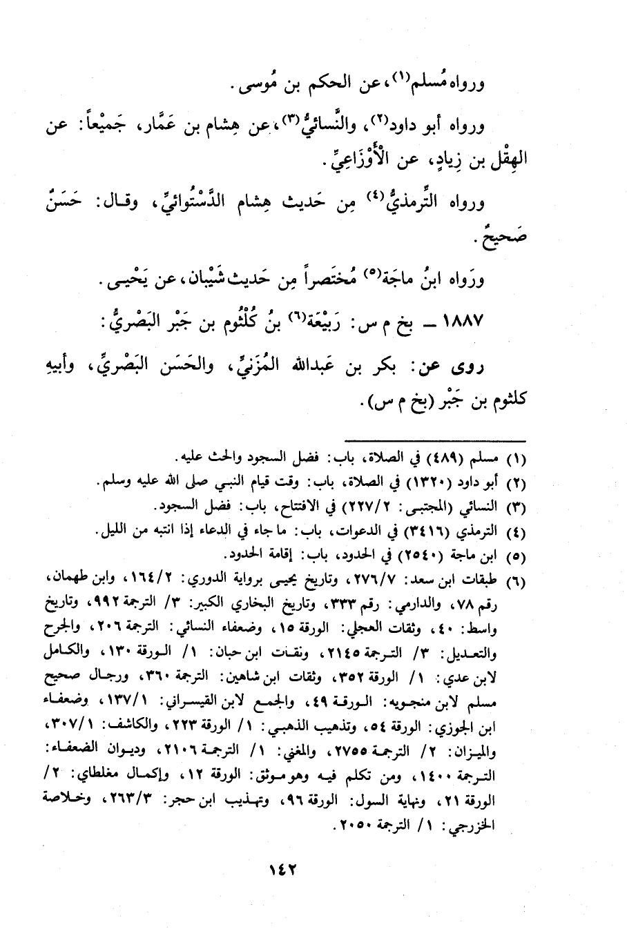 (6) طبقات ابن سعد: 7 / 276، وتاريخ يحيى برواية الدوري: 2 / 164، وابن طهمان، رقم 78، والدارمي: رقم 333، وتاريخ البخاري الكبير: 3 / الترجمة 992، وتاريخ واسط: 40، وثقات العجلي: الورقة 15، وضعفاء النَّسَائي: الترجمة 206، والجرح والتعديل: 3 / الترجمة 2145، وثقات ابن حبان: 1 / الورقة 130، والكامل لابن عدي: 1 / الورقة 352، وثقات ابن شاهين: الترجمة 360، ورجال صحيح مسلم لابن منجويه: الورقة 49، والجمع لابن القيسراني: 1 / 137، وضعفاء ابن الجوزي: الورقة 54، وتذهيب الذهبي: 1 / الورقة 223، والكاشف: 1 / 307، والميزان: 2 / الترجمة 2755، والمغني: 1 / الترجمة 2106، وديوان الضعفاء: الترجمة 1400، ومن تكلم فيه وهو موثق: الورقة 12، وإكمال مغلطاي: 2 / الورقة 21، ونهاية السول: الورقة 96، وتهذيب ابن حجر: 3 / 263، وخلاصة الخزرجي: 1 / الترجمة 2050.