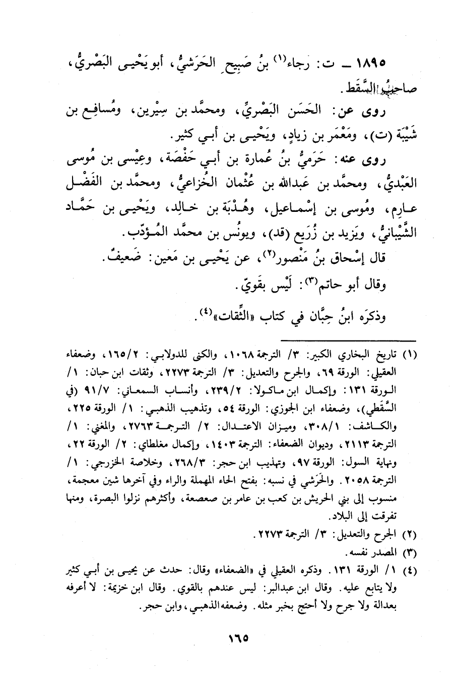 1895 - ت: رجاء بن صبيح الحرشي (1) ، أبويحيى البَصْرِيّ، صاحب السقط.