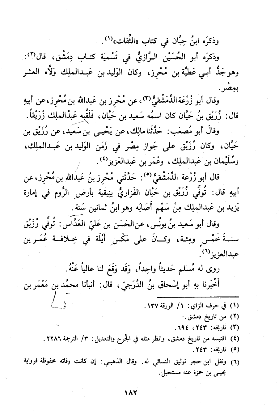 (4) اقتبسه من تاريخ دمشق، وانظر مثله في الجرح والتعديل: 3 / الترجمة 2286.