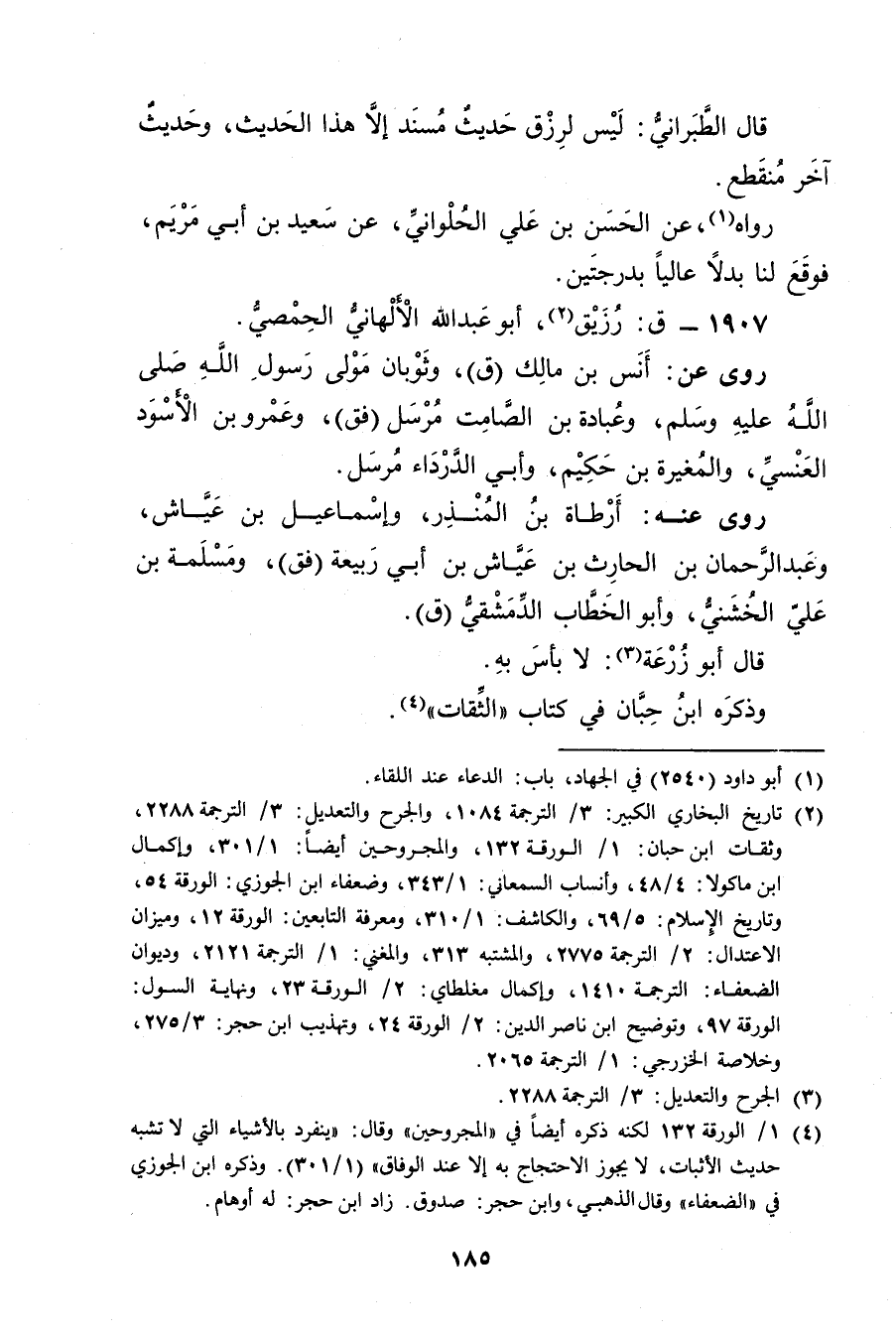 قال الطبراني: لِرِزْقٍ حَدِيثٌ مُسْنَدٌ إِلا هَذَا الْحَدِيثِ، وحَدِيثٌ أخَرُ مُنْقَطِعٌ.