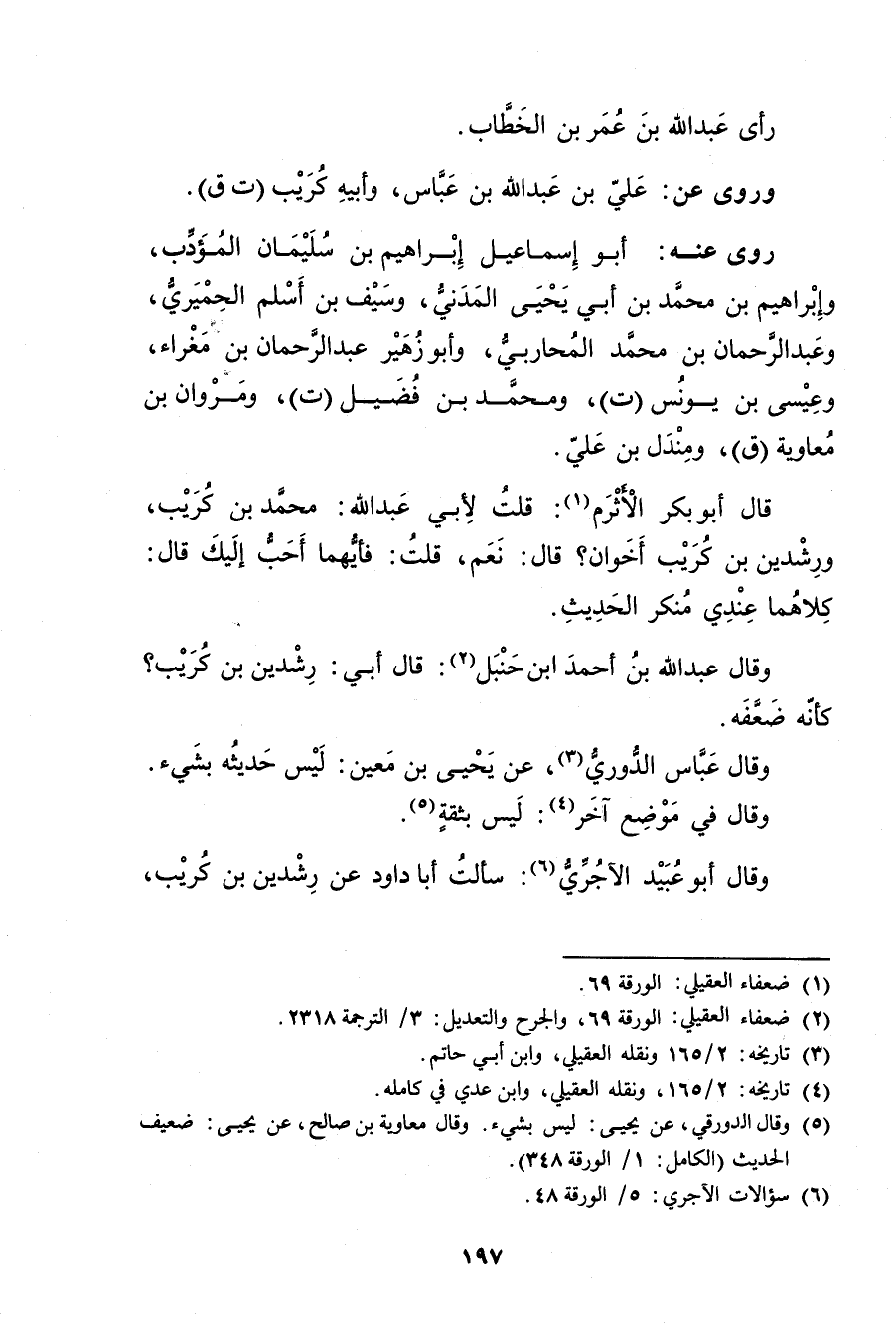 (2) ضعفاء العقيلي: الورقة 69، والجرح والتعديل: 3 / الترجمة 2318.