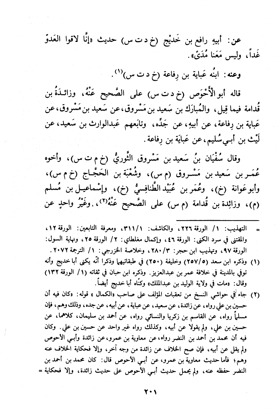 = التهذيب: 1 / الورقة 226، والكاشف: 1 / 311، ومعرفة التابعين: الورقة 12، والمقتنى في سرد الكنى: الورقة 46، وإكمال مغلطاي: 2 / الورقة 25، ونهاية السول: الورقة 97، وتهذيب ابن حجر: 3 / 280، وخلاصة الخزرجي: 1 / الترجمة 2072.