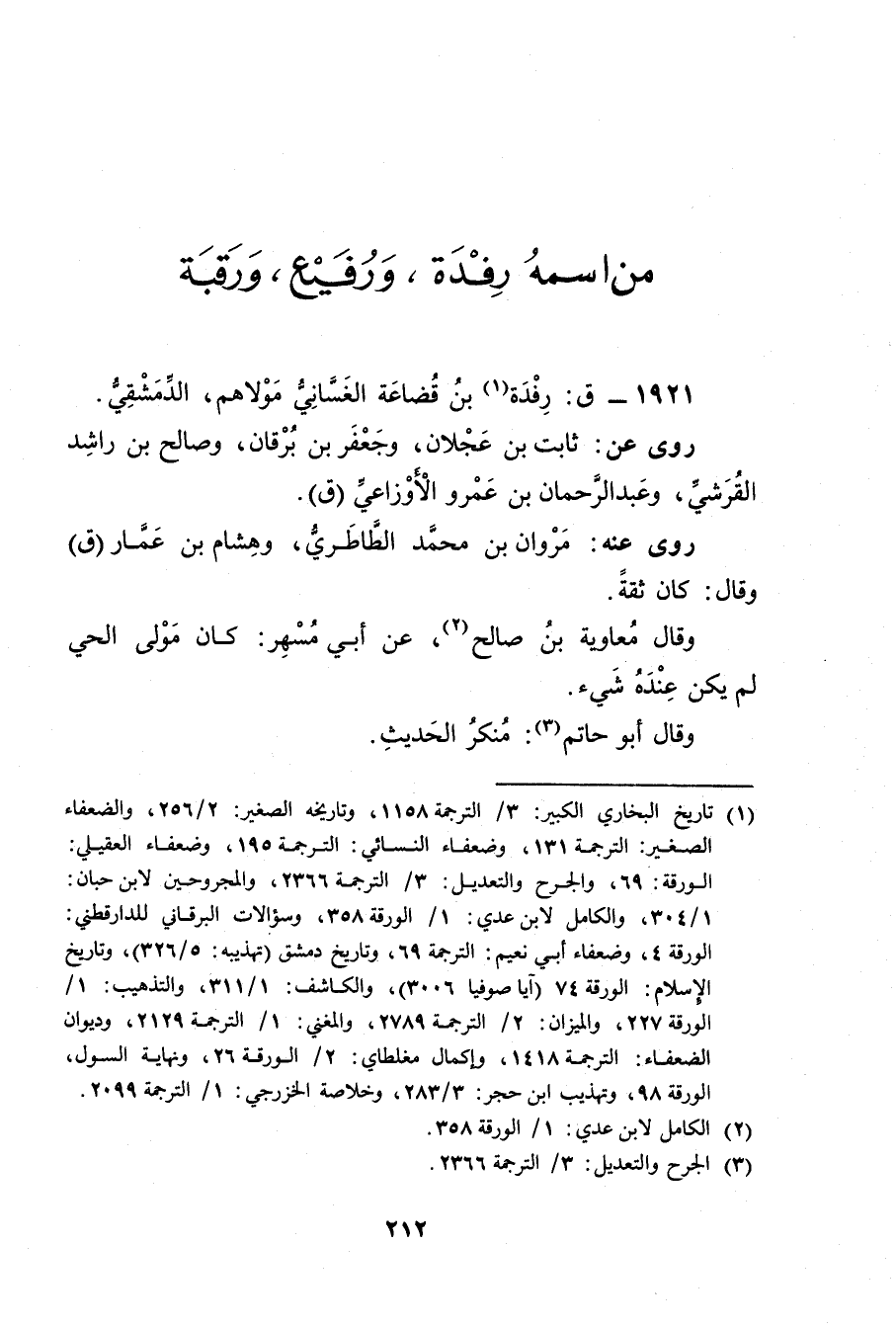1921 - ق: رفدة بن قضاعة الغساني (1) مولاهم، الدمشقي.
