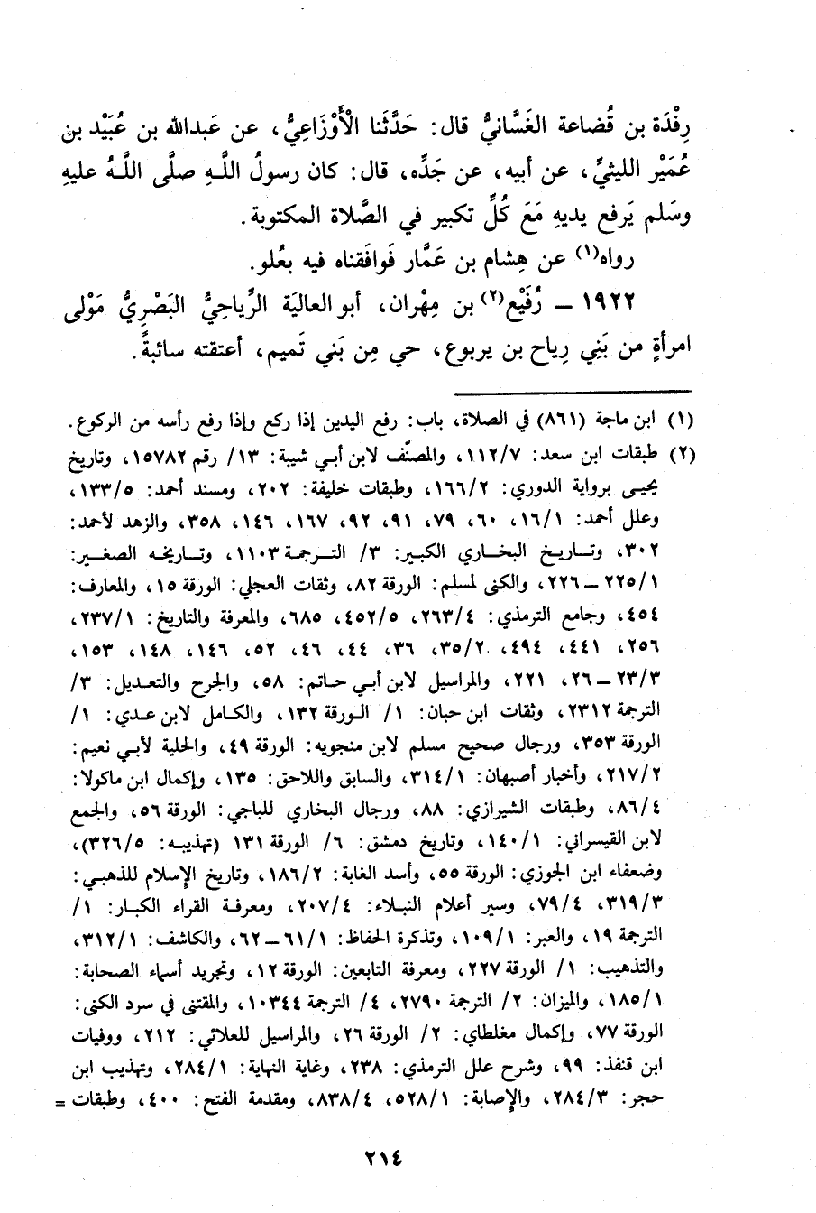 1922 - رفيع بن مهران (2) ، أبو العالية الرياحي البَصْرِيّ مولى امرأة من بْني رياح بْن يربوع، حي من بْني تميم، أعتقته سائبة.