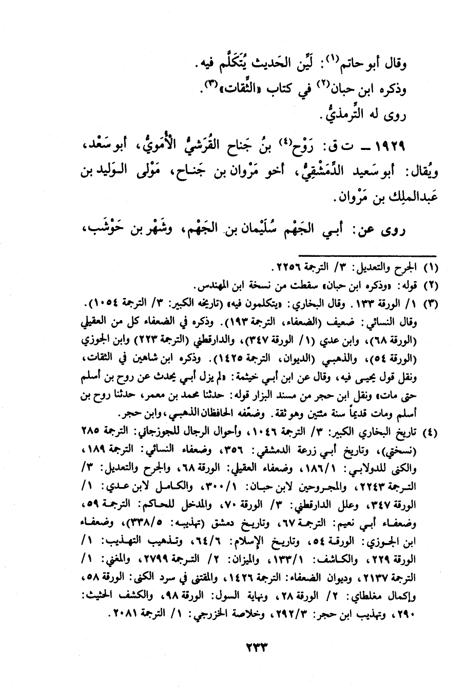 1929 - ت ق: روح بن جناح القرشي الأُمَوِي (4) ، أبو سعد، ويُقال: أبو سَعِيد الدمشقي، أخو مروان بْن جناح، مولى الوليد بْن عَبد المَلِك بْن مروان.