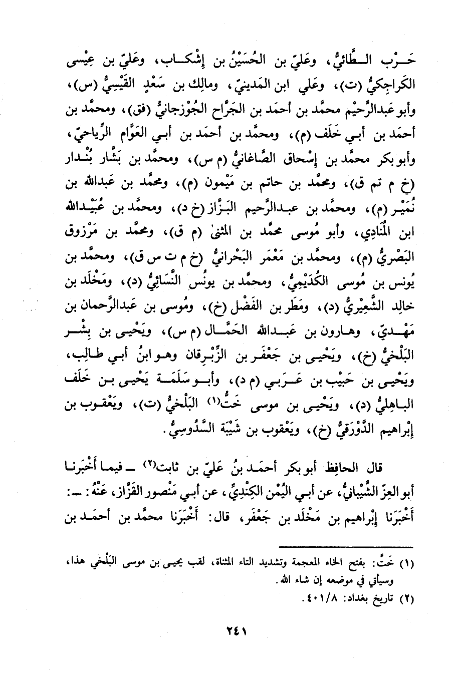 (1) خت: بفتح الخاء المعجمة وتشديد التاء المثناة، لقب يحيى بن موسى البلخي هذا، وسيأتي في موضعه إن شاء الله.