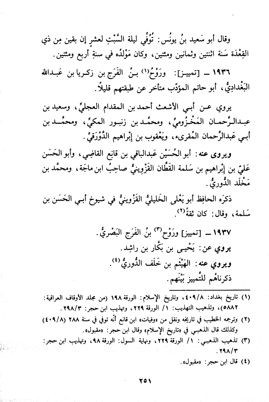 1936 - تمييز: وروح بن الفرج بن زكريا بن عَبد الله البغدادي (1) ، أبو حاتم المؤدب متأخر عن طبقتهم قليلا.
