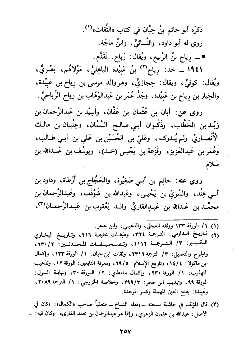 1941 - خد: رياح بن عُبَيدة الباهلي (2) ، مولاهم، بصري، ويُقال: كوفي، ويُقال: حجازي، وهو والد موسى بْن رياح بْن عُبَيدة، والخيار بْن رياح بْن عُبَيدة، وجد عُمَر بْن عبد الوهاب بْن رياح الرياحي.