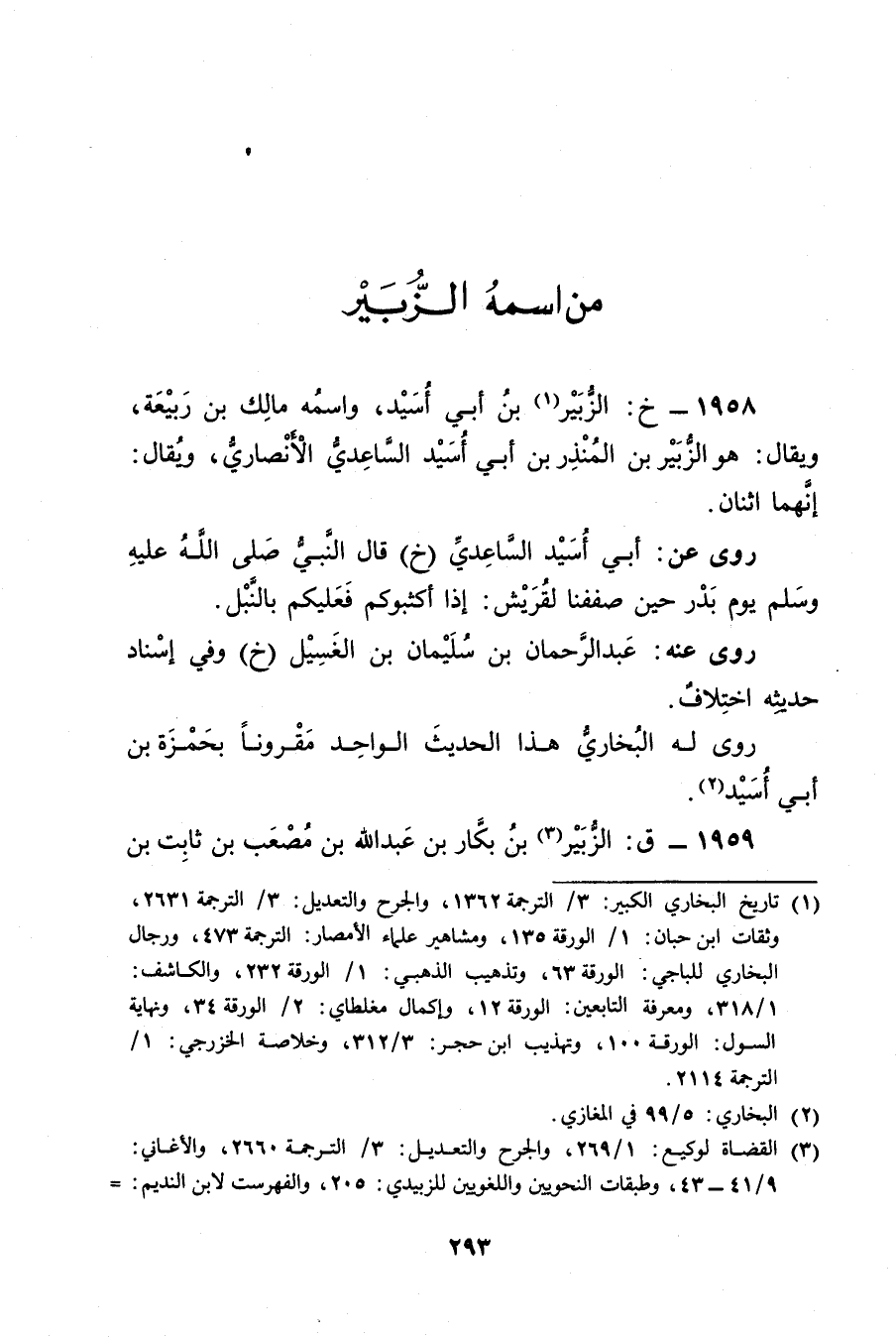 1958 - خ: الزبير بن أَبي أسيد (1) ، واسمه مالك بن ربيعة، ويُقال: هو الزبير بْن المنذر بْن أَبي أسيد الساعدي الأَنْصارِيّ، ويُقال: أنهما اثنان.