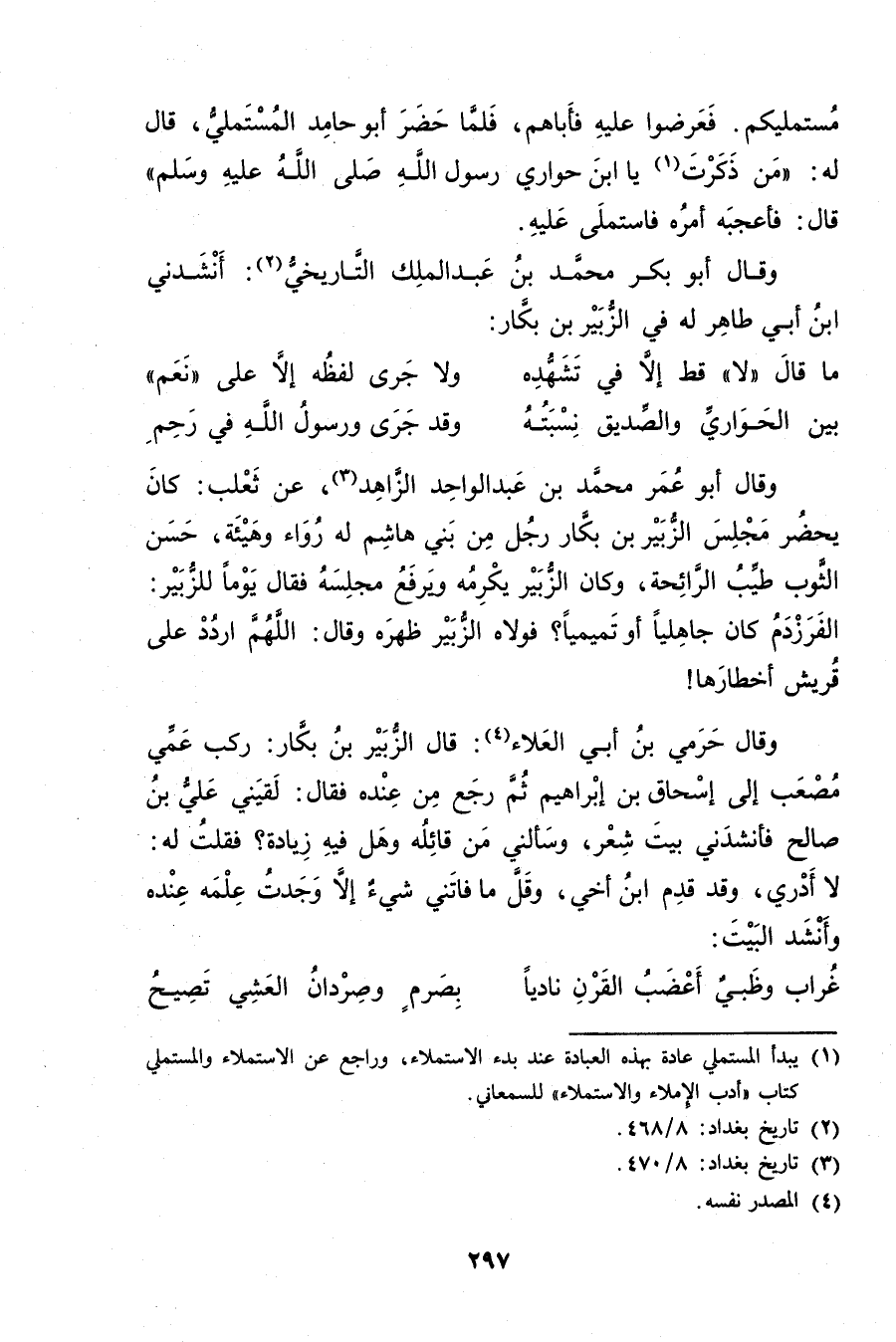 وَقَال أبو بكر محمد بن عَبد المَلِك التاريخي (2) : أنشدني ابْن أَبي طاهر له في الزبير بْن بكار: