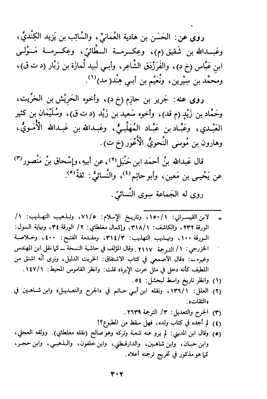 (5) وَقَال ابن المديني: لم يرو عنه شعبة وتركه وهو صالح (نقله مغلطاي) . ووثقه العجلي، وابن حبان، وابن شاهين، والدارقطني، وابن خلفون، والذهبي، وابن حجر، كما هو مذكور في تخريج ترجمته أعلاه.