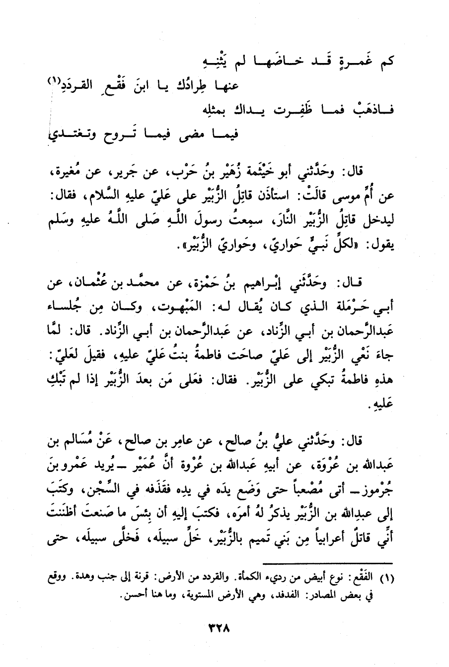 (1) الفقع: نوع ابيض من ردئ الكمأة. والقردد من الارض: قرنة إلى جنب وهدة. ووقع في بعض المصادر: الفدفد، وهي الارض المستوية، وما هنا أحسن.