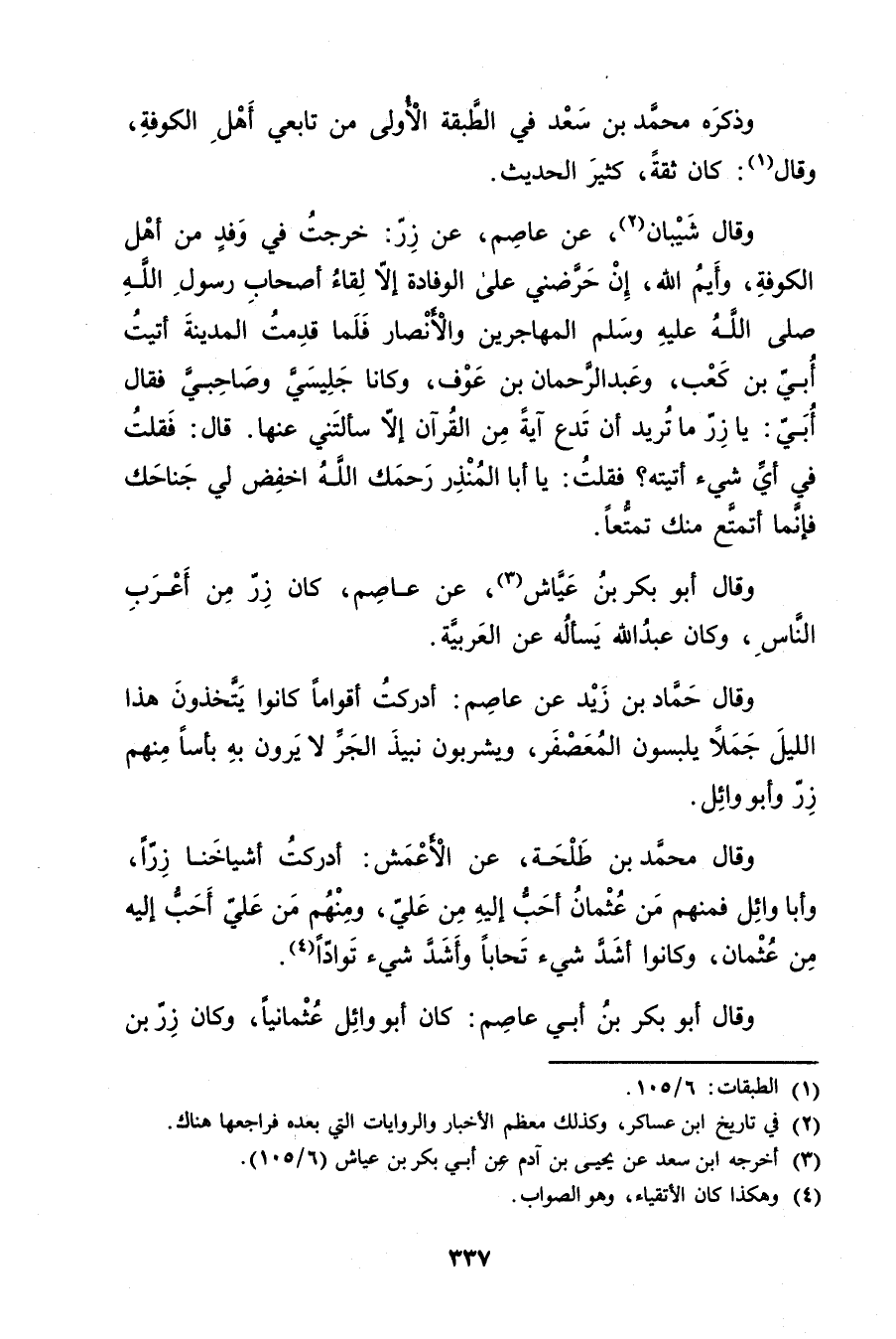 (3) أخرجه ابن سعد عَنْ يحيى بْن آدم عَن أبي بكر بن عياش (6 / 105) .