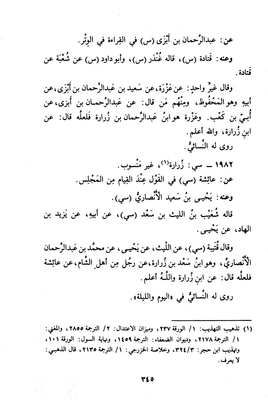 (1) تذهيب التهذيب: 1 / الورقة 237، وميزان الاعتدال: 2 / الترجمة 2855، والمغني: 1 / الترجمة 2178، وديوان الضعفاء: الترجمة 1459، ونهاية السول: الورقة 101، وتهذيب ابن حجر: 3 / 324، وخلاصة الخزرجي: 1 / الترجمة 2135، قال الذهبي: لا يعرف.