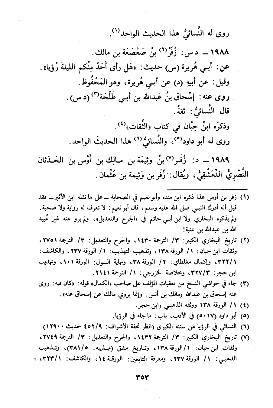 1989 - د: زفر بن وثيمة بن مالك بْن أوس بْن الحدثان النصري الدمشقي (7) ، ويُقال: زفر بْن وثيمة بن عثمان.