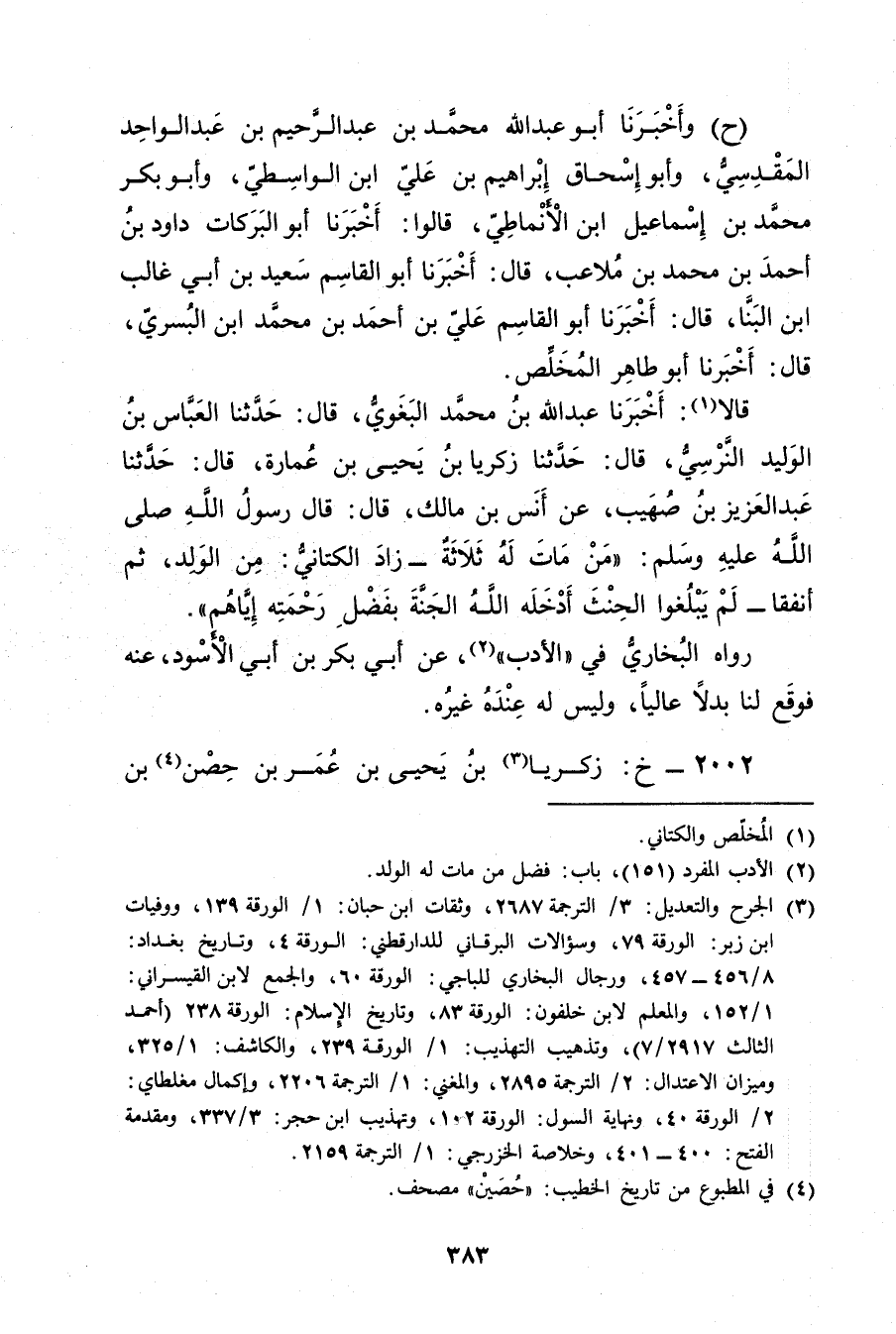2002 - خ: زكريا بن يحيى بن عُمَر (3) بن حصن (4) بْن