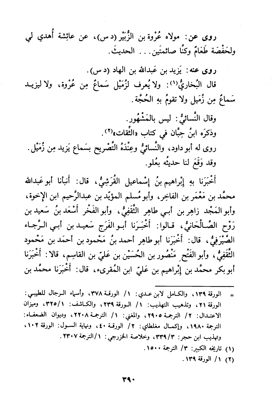 قال البخاري (1) : ولا يعرف لزميل سماع من عروة، ولا ليزيد سماع من زميل ولا تقوم به الحجة.