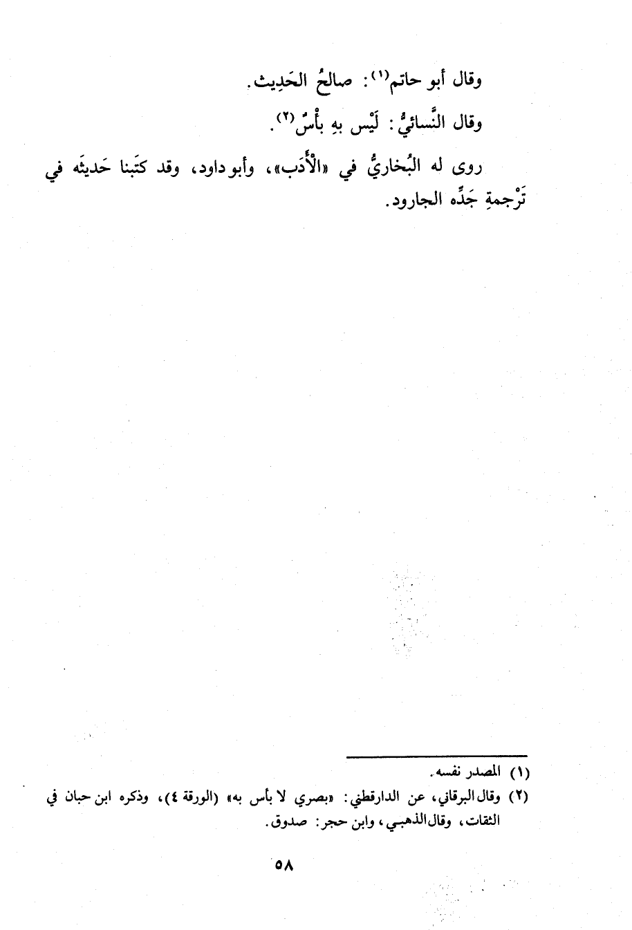 (2) وَقَال البرقاني، عن الدارقطني: بصري لا بأس به" (الورقة 4) ، وذكره ابنُ حِبَّان في الثقات، وَقَال الذهبي، وابن حجر: صدوق.