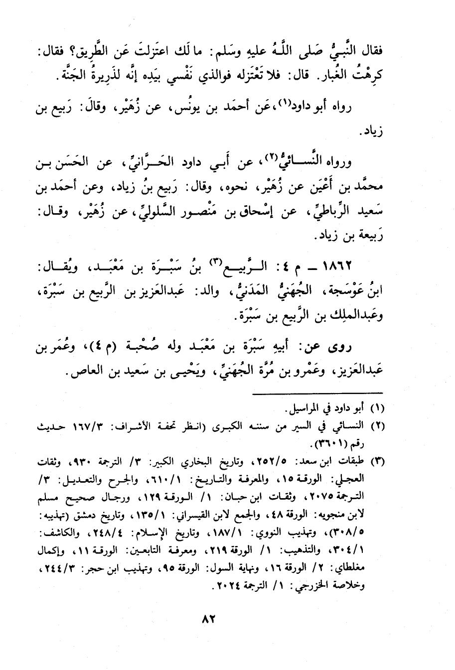 1862 - م 4: الربيع بن سبرة بن معبد (3) ، ويُقال: ابْن عوسجة، الجهني المدني، والد: عَبْد الْعَزِيزِ بْن الربيع بْن سبرة، وعبد الملك بْن الربيع بْن سبرة.