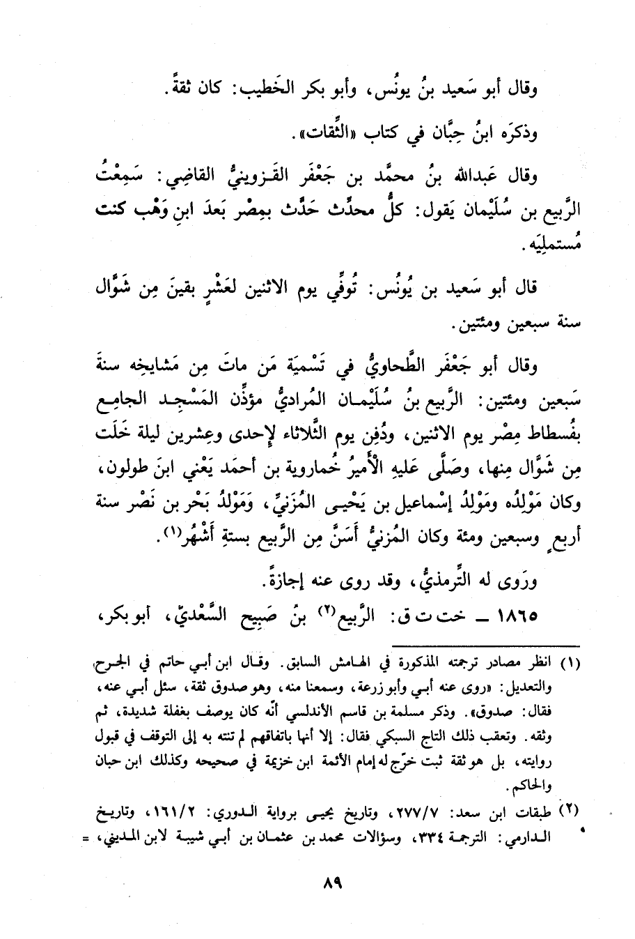 (2) طبقات ابن سعد: 7 / 277، وتاريخ يحيى برواية الدوري: 2 / 161، وتاريخ الدارمي: الترجمة 334، وسؤالات مُحَمَّدُ بْنُ عُثْمَانَ بْنِ أَبي شَيْبَة لابن المديني، =
