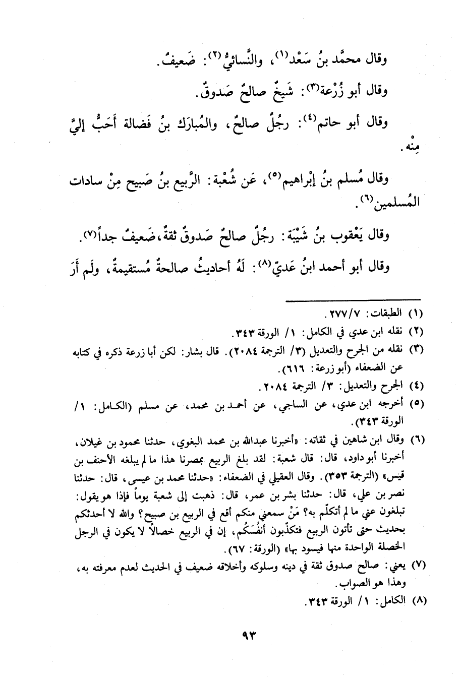 (3) نقله من الجرح والتعديل (3 / الترجمة 2084) . قال بشار: لكن أبا زرعة ذكره في كتابه عن الضعفاء (أبو زُرْعَة: 616) .