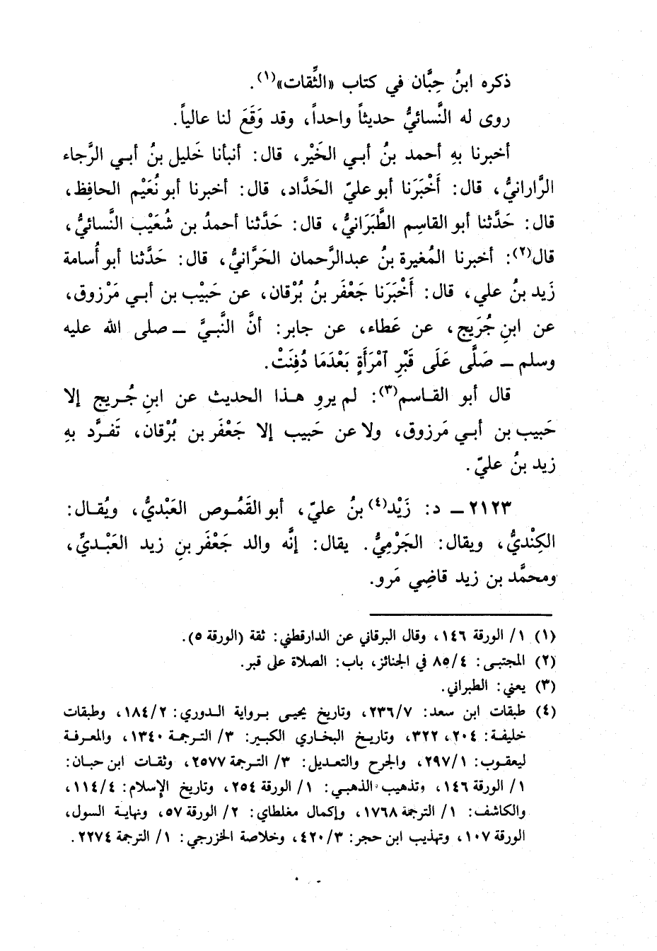 2123 - د: زيد بن علي (4) : أبوالقموص العبدي، ويُقال: الْكُنْدِيّ، ويُقال: الجرمي، يُقَال: إنه والد جَعْفَر بْن زَيْد العبدي، ومحمد بْن زَيْد قاضي مرو.