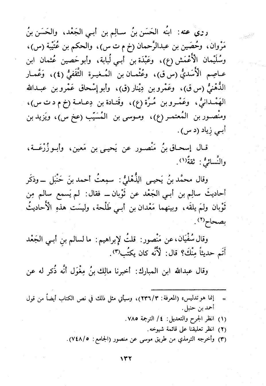 وَقَال سُفْيَان، عَنْ مَنْصُور: قلت لإبراهيم: ما لسالم بْن أَبي الجعد أتم حديثا منك؟ قال: لأنه كَانَ يكتب (3) .