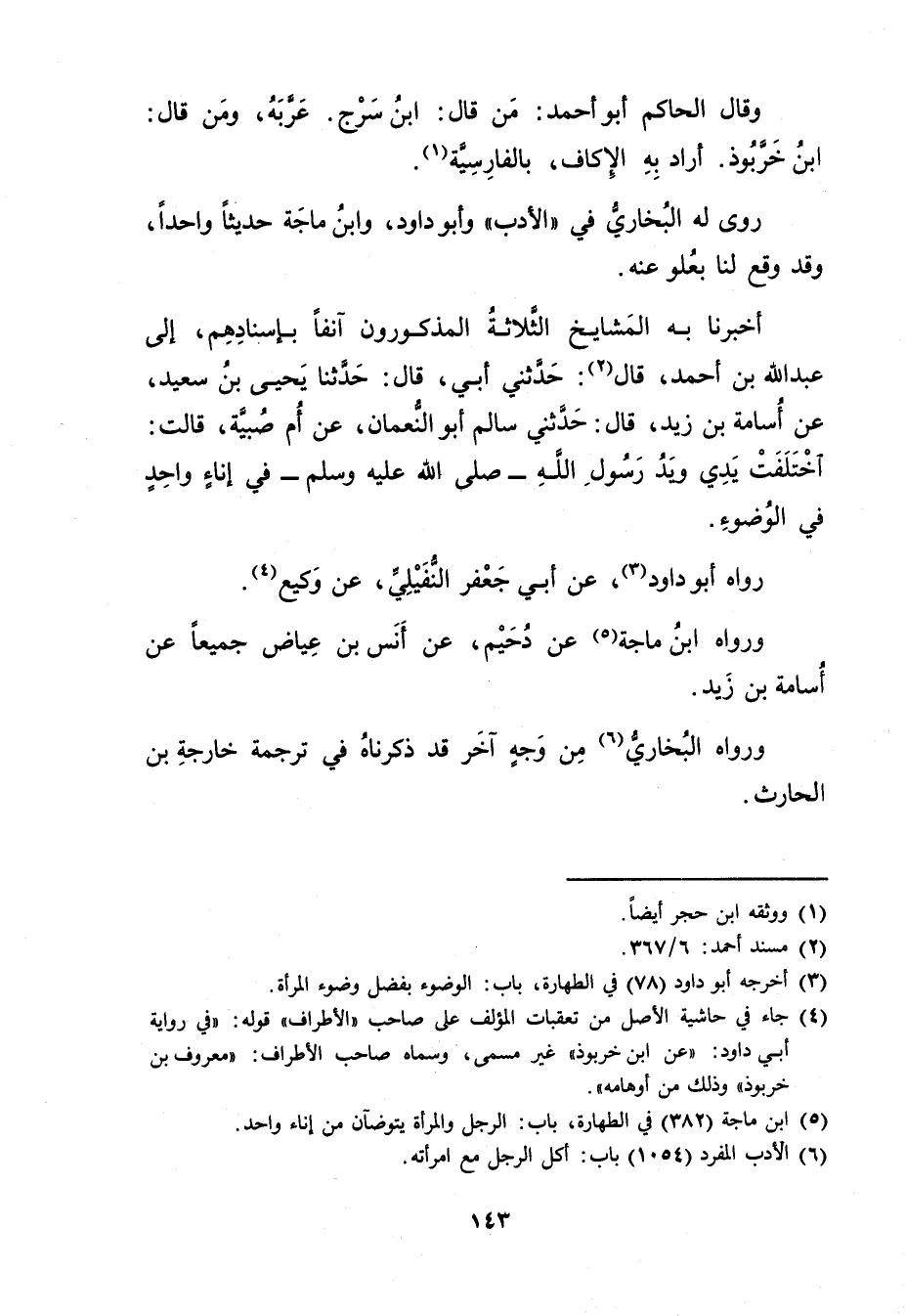(4) جاء في حاشية الاصل من تعقبات المؤلف على صاحب "الاطراف" قوله: في رواية أبي داود: عن ابن خربوذ"غير مسمى، وسماه صاحب الاطراف: معروف بن خربوذ"وذلك من أوهامه.