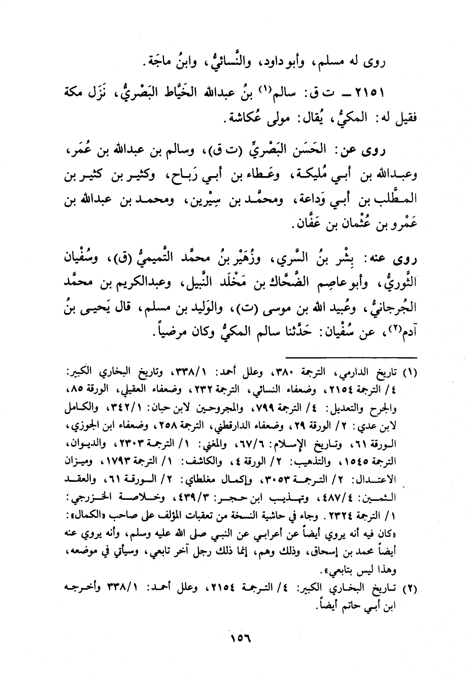 2151 - ت ق: سَالِم بن عَبد اللَّهِ الخياط البَصْرِيّ (1) ، نزل مكة فقيل لَهُ: المكي، يقال: مولى عكاشة.