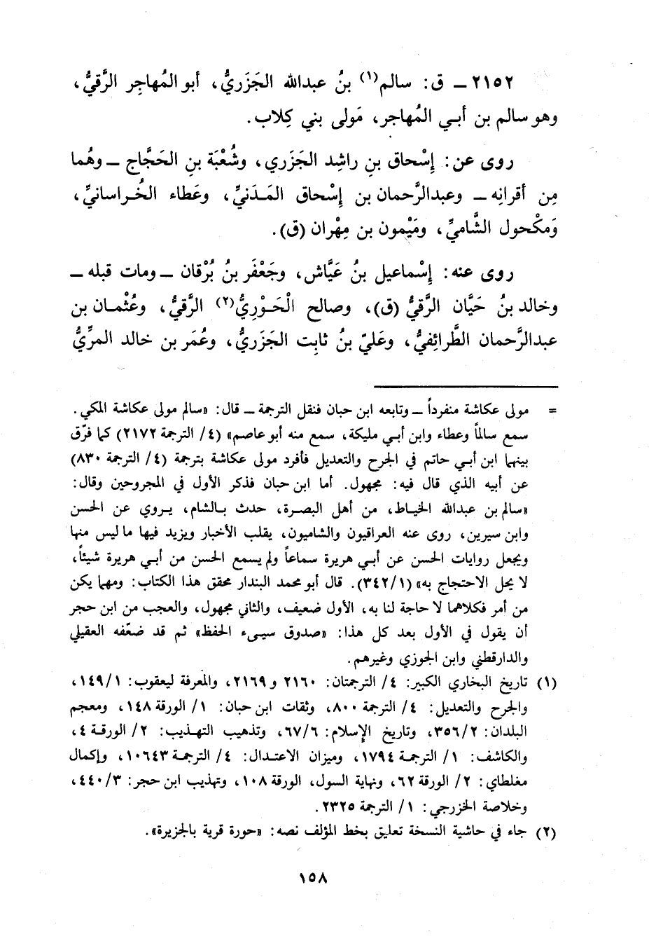 2152 - ق: سَالِم بن عَبد اللَّهِ الجزري (1) ، أبو المهاجر الرَّقِّيّ، وهُوَ سَالِم بْن أَبي المهاجر، مولى بني كلاب.