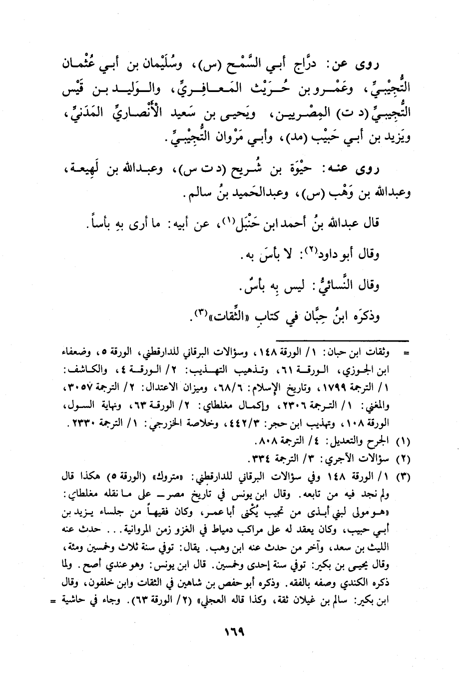 = وثقات ابن حبان: 1 / الورقة 148، وسؤالات البرقاني للدارقطني، الورقة 5، وضعفاء ابن الجوزي، الورقة 61، وتذهيب التهذيب: 2 / الورقة 4، والكاشف: 1 / الترجمة 1799، وتاريخ الاسلام: 6 / 68، وميزان الاعتدال: 2 / الترجمة 3057، والمغني: 1 / الترجمة 2306، وإكمال مغلطاي: 2 / الورقة 63، ونهاية السول، الورقة 108، وتهذيب ابن حجر: 3 / 442، وخلاصة الخزرجي: 1 / الترجمة 2330.
