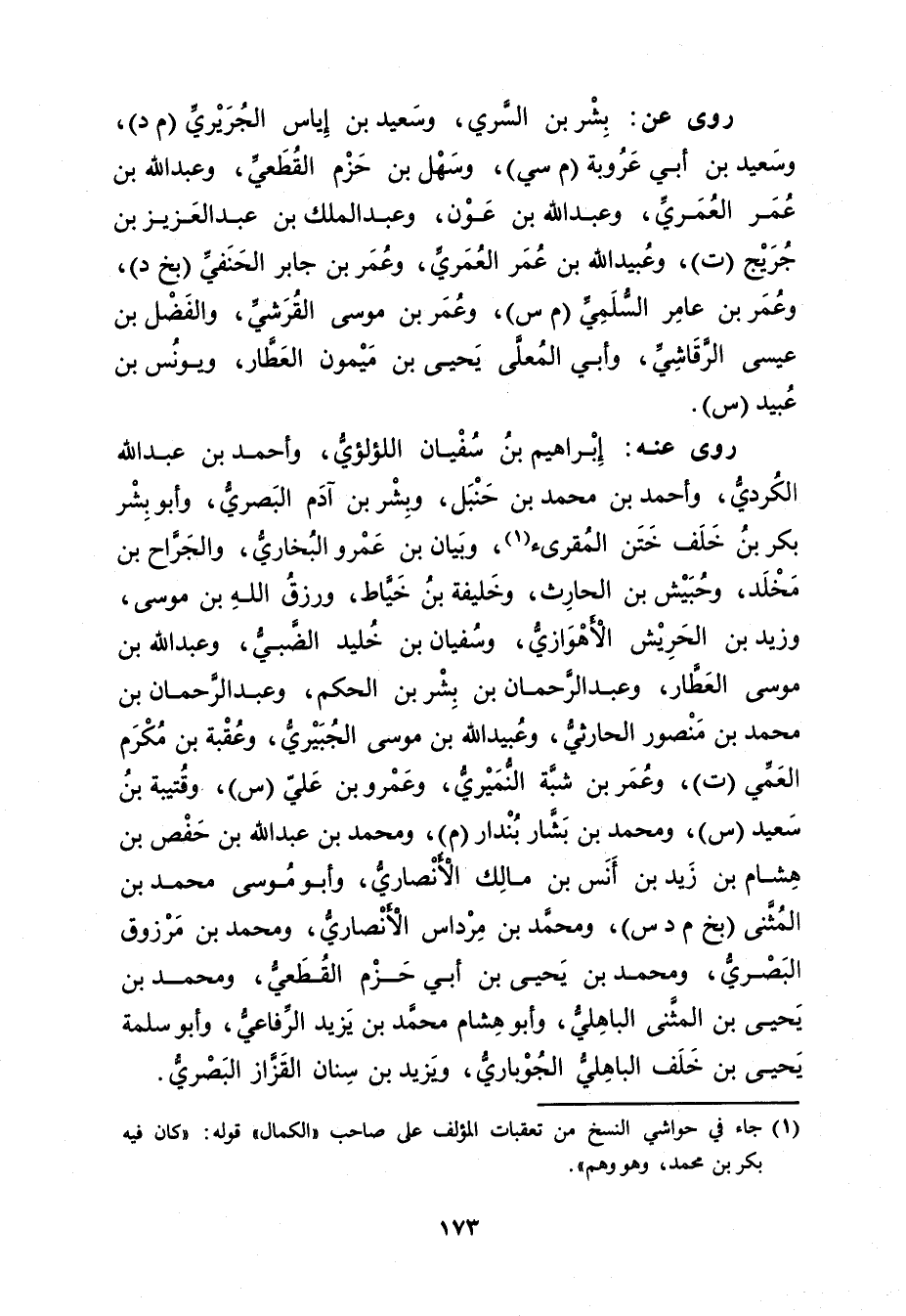 (1) جاء في حواشي النسخ من تعقبات المؤلف على صاحب "الكمال" قوله: كان فيه بكر بن محمد، وهو وهم".