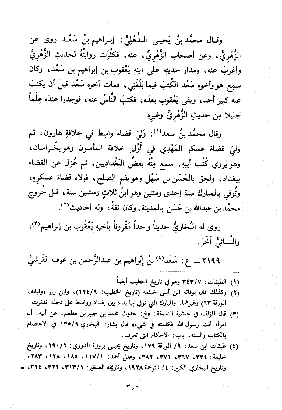 (4) طبقات ابن سعد: 9 / الورقة 179، وتاريخ يحيى برواية الدوري: 2 / 190، وتاريخ خليفة: 334، 367، 371، 382، وعلل أحمد: 1 / 117، 185، 128، 283، وتاريخ البخاري الكبير: 4 / الترجمة 1928، وتاريخه الصغير: 1 / 313، 322، 324، =