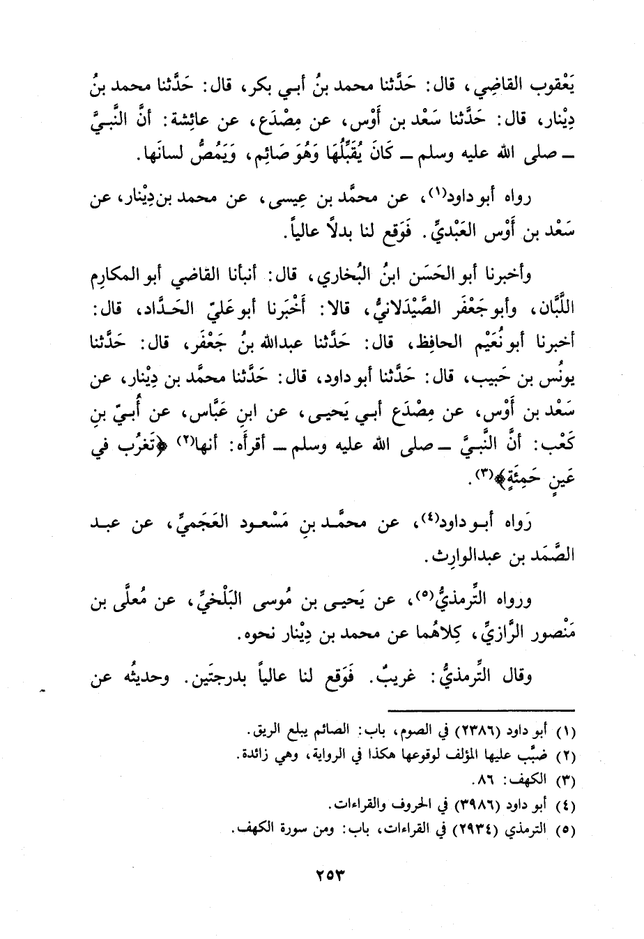 رَوَاهُ أَبُو دَاوُدَ (4) ، عن مُحَمَّدِ بْن مَسْعُود العجمي، عَنْ عَبْد الصَّمَدِ بْنِ عَبْدِ الْوَارِثِ.