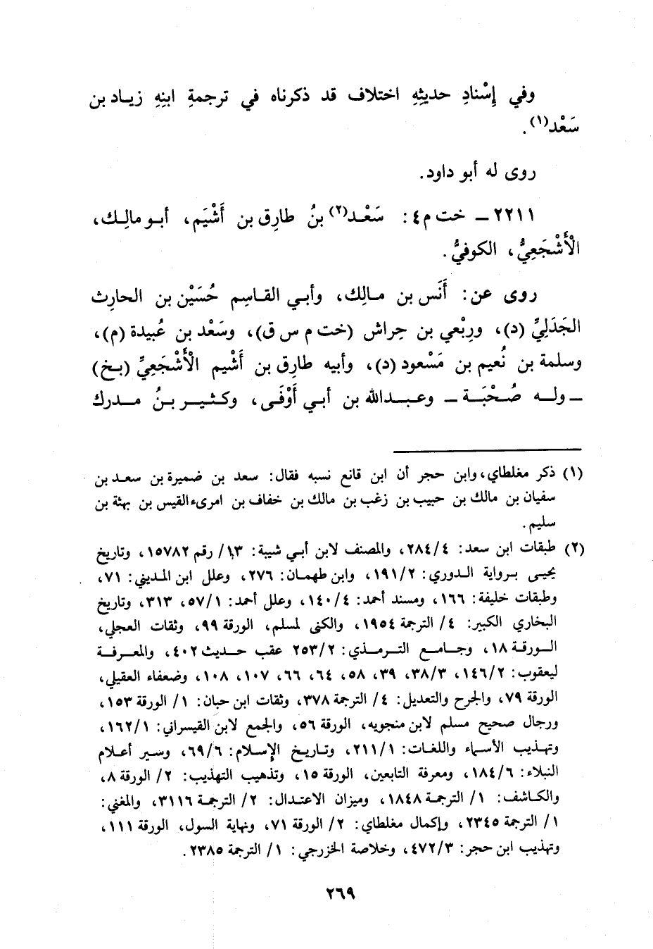 2211 - خت م 4: سَعْد بن طارق بن أشيم (2) ، أَبُو مَالِك، الأشجعي، الْكُوفِيّ.