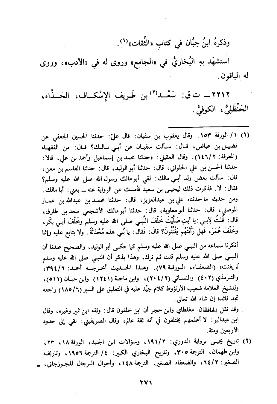 2212 - ت ق: سَعْد بن طريف الإسكاف (2) ، الحذاء، الحنظلي، الكوفي.