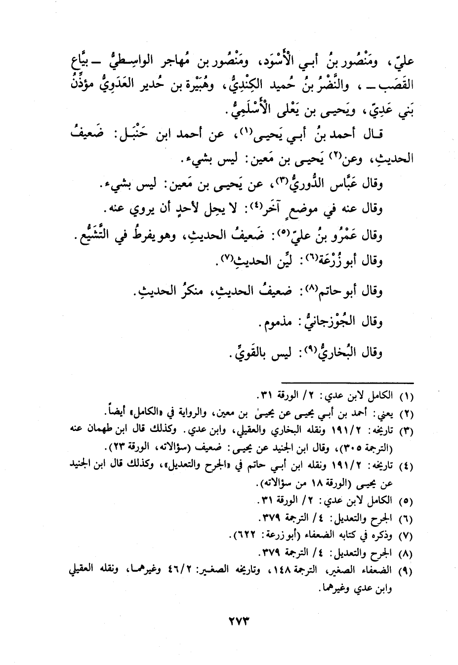 (3) تاريخه: 2 / 191 ونقله البخاري والعقيلي، وابن عدي. وكذلك قال ابن طهمان عنه (الترجمة 305) ، وَقَال ابن الجنيد عن يحيى: ضعيف (سؤالاته، الورقة 23) .