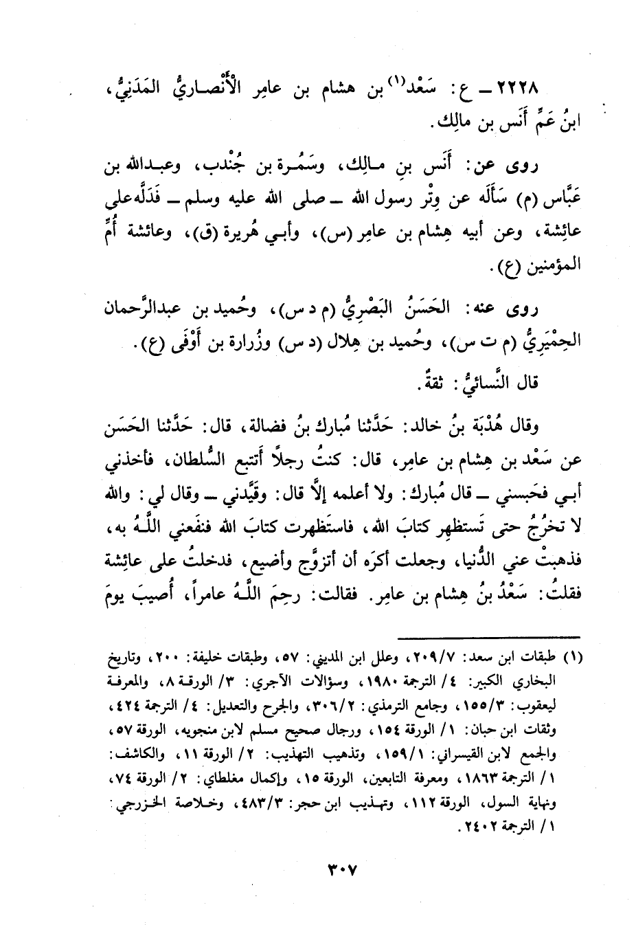 2228 - ع: سَعْد بن هِشَام بن عَامِر الأَنْصارِيّ الْمَدَنِيّ (1) ، ابْن عم أَنَس بْن مالك.