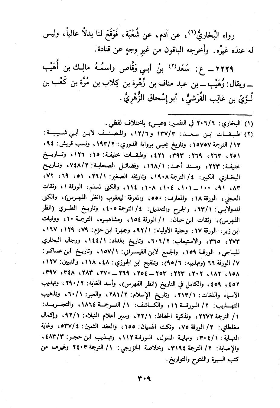 2229 - ع: سَعْد بن أَبي وقاص (2) واسمه مَالِك بْن أهيب - ويُقال: وهَيْب - بْن عبد مناف بْن زهرة بْن كلاب بْن مرة بْن كعب بْن لؤي بْن غَالِب الْقُرَشِيّ، أَبُو إِسْحَاق الزُّهْرِيّ.