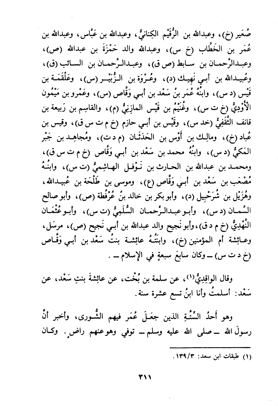 وَقَال الواقدي (1) ، عَنْ سَلَمَة بْن بخت، عَنْ عَائِشَة بِنْت سَعْد، عَنْ سَعْد: أسلمت وأنا ابْن تسع عشرة سنة.