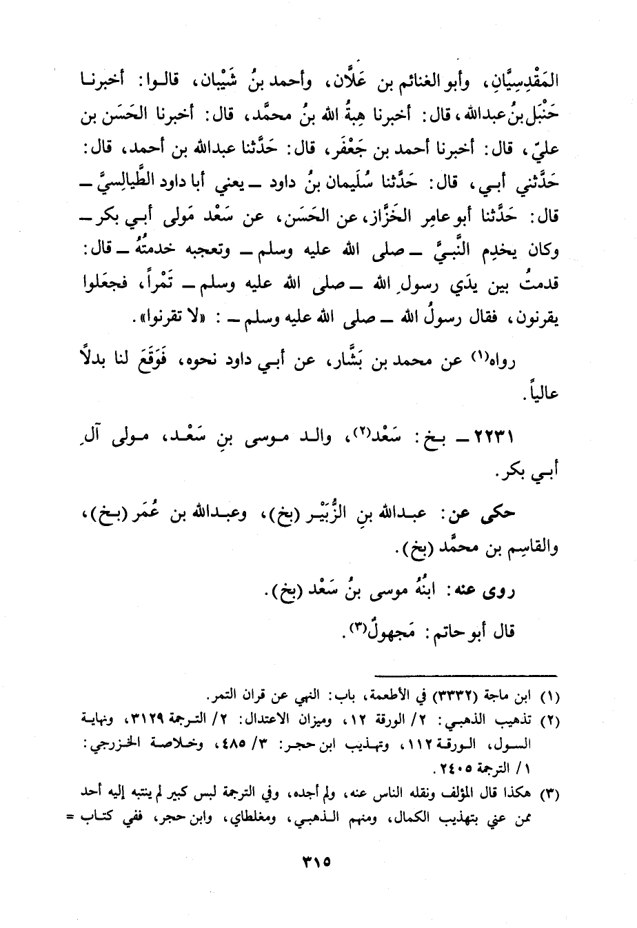 2231 - بخ: سَعْد (2) ، والد مُوسَى بْن سَعْد، مولى آل أَبِي بَكْر.