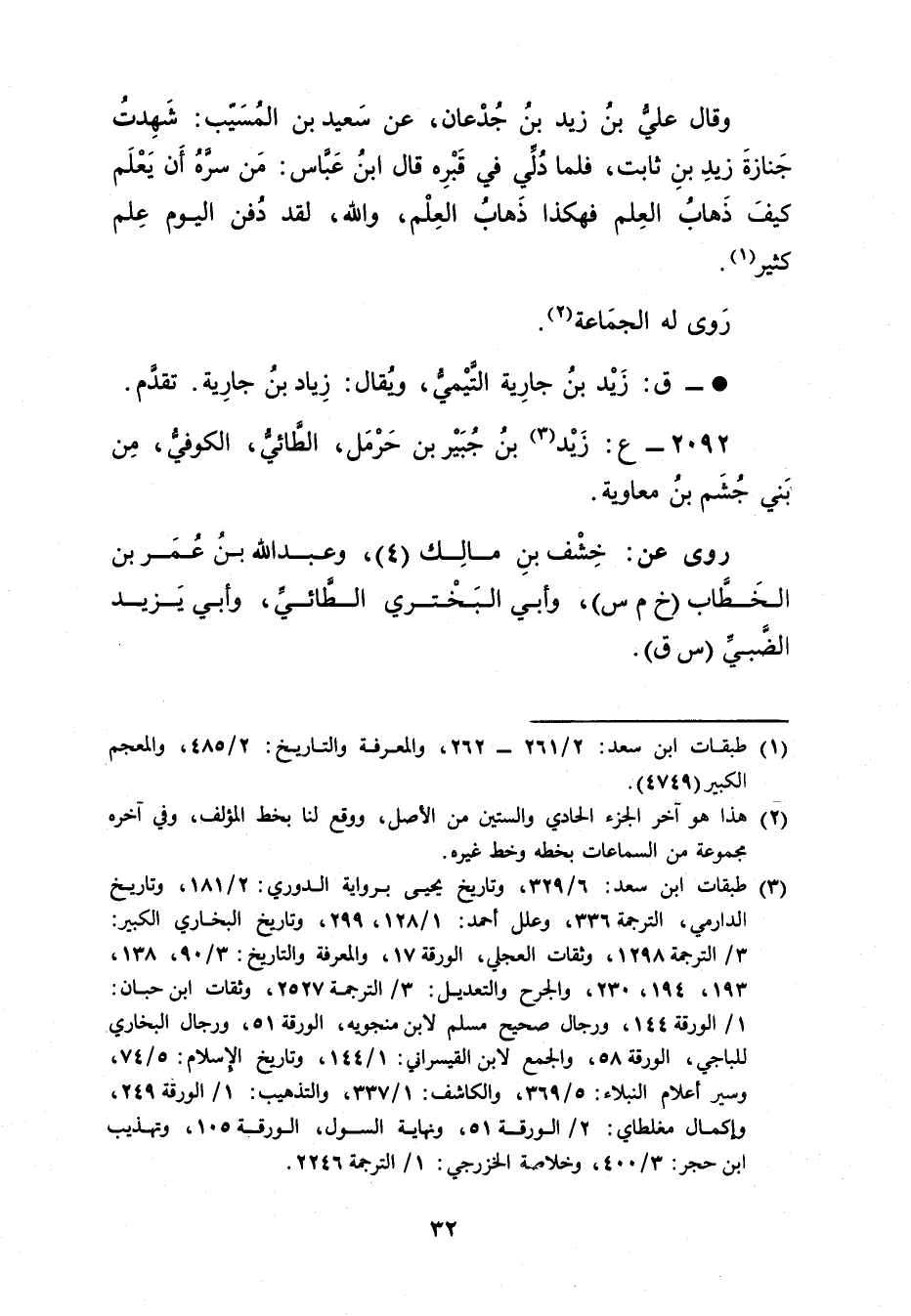 2092 - ع: زَيْد بن جبير بن حرمل (3) ، الطائي، الْكُوفِيّ، من بني جشم بْن معاوية.