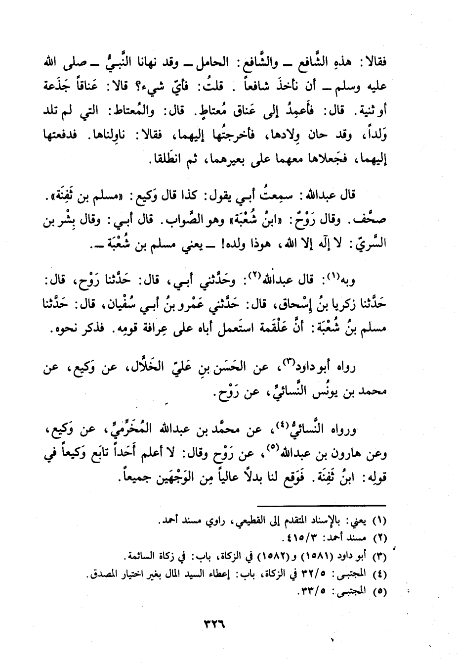 ورَوَاهُ النَّسَائي (4) ، عَنْ مُحَمَّدِ بْنِ عَبد اللَّهِ المخرمي، عَنْ وكِيع، وعَنْ هَارُونَ بْنِ عَبد اللَّهِ (5) ، عَنْ روح وَقَال: لا أعلم أحدا تابع وكيعا فِي قوله: ابْن ثفنة. فوقع لنا بدلا عالياً من الوجهين جميعا.