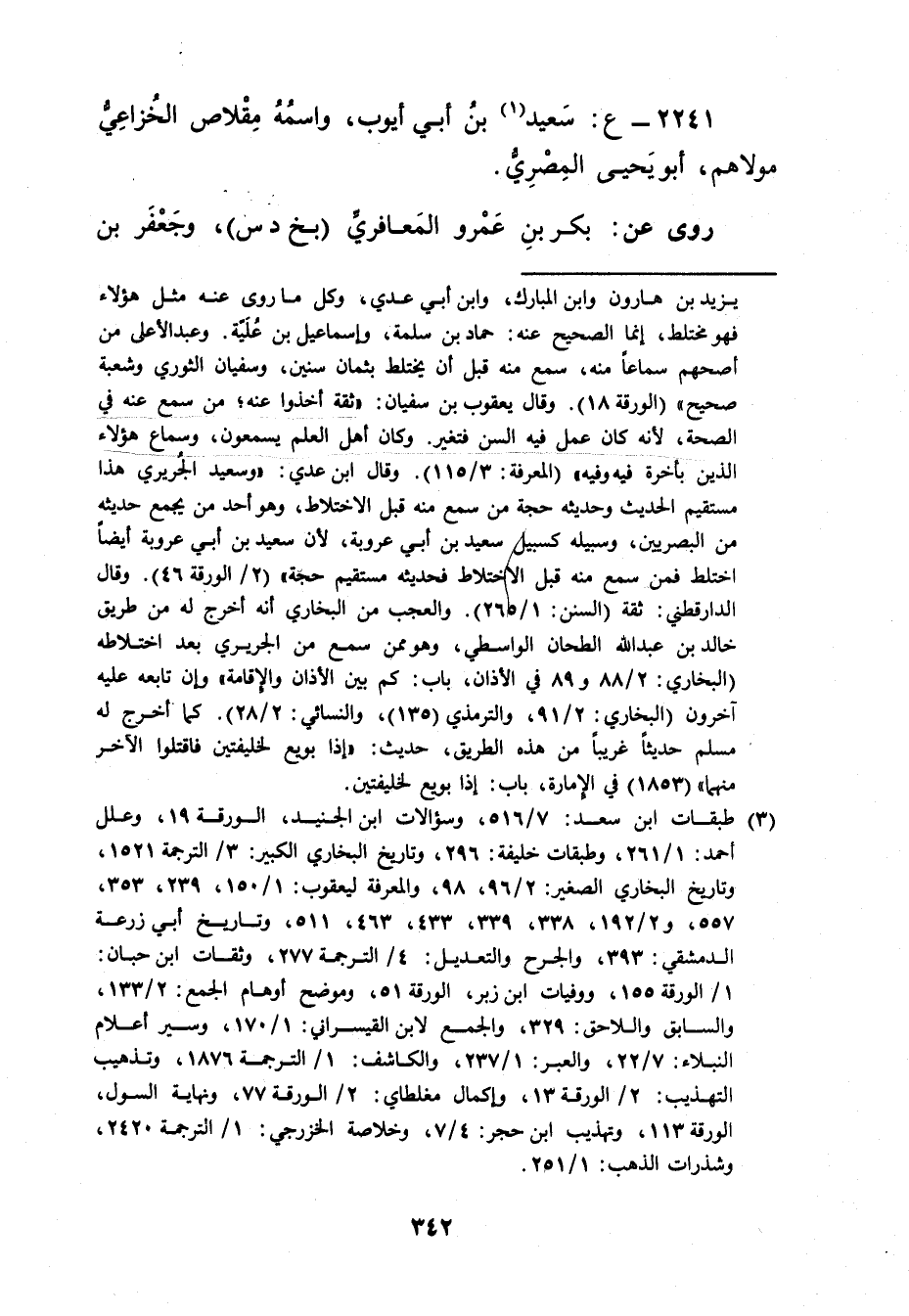 2241 - ع: سَعِيد بن أَبي أَيُّوب (1) ، واسمه مقلاص الخزاعي مولاهم، أبويحيى المِصْرِي.