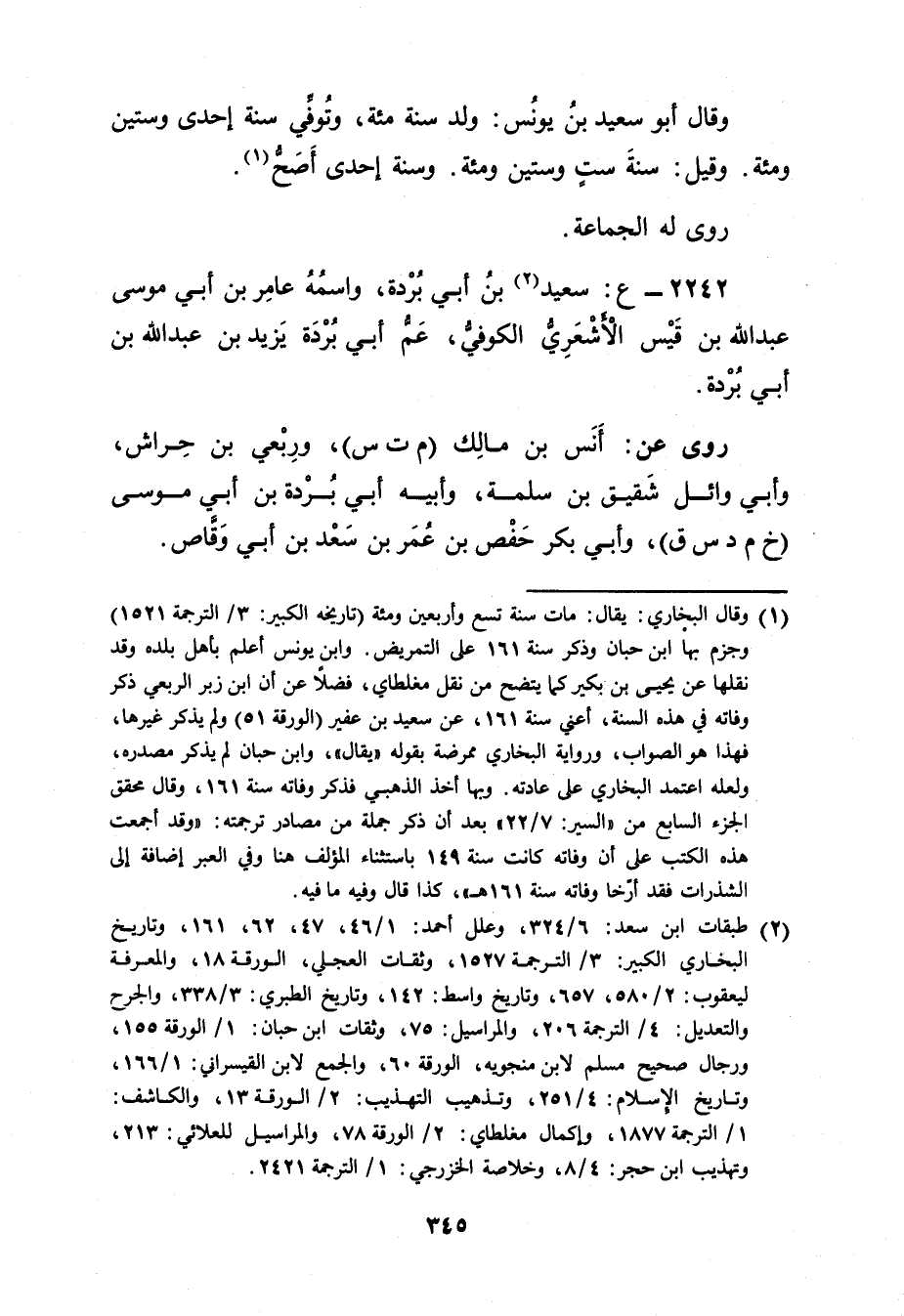 2242 - ع: سَعِيد بن أَبي بردة (2) ، واسمه عَامِر بْن أَبي موسى عَبد الله بن قيس الأشعري الْكُوفِيّ، عم أَبِي بردة يزيد بْن عَبد الله بْن أَبي بردة.