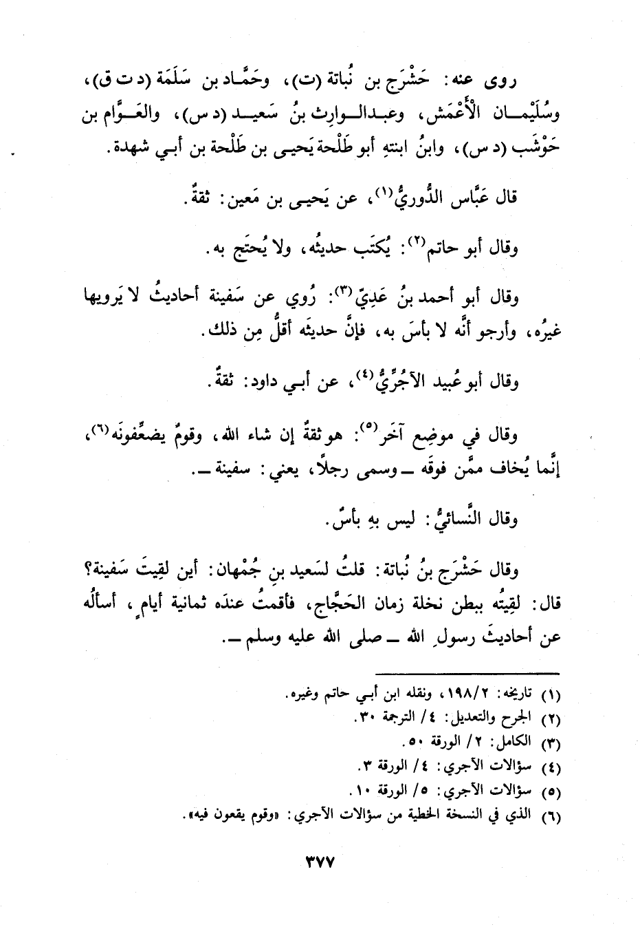 وَقَال حشرج بْن نباتة: قلت لسَعِيد بن جمهان: أين لقيت سفينة؟